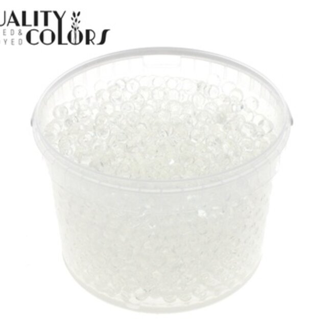 Crystal clear gel beads (3L) for a magical effect in vases. These transparent water pearls hydrate flowers and make decorations 'float'. The perfect choice for luxury events, weddings, and professional floral styling. Read more.