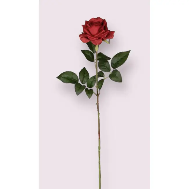 Silk Rose Red 75 cm | A grand statement of natural beauty Bring a refined and vibrant atmosphere into your home with this beautiful red silk rose. Standing at an impressive 75 centimeters tall, this stem is specially designed to add height and allure to your interior. The full, layered flower head is meticulously recreated in detail, providing a luxurious appearance that continues to shine all year round.