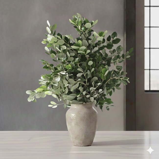 De lengte van 60 centimeter maakt deze takken ongelooflijk veelzijdig. Ze zijn perfect om een statement te maken in een hoge, slanke vaas, waar hun volle blad en natuurlijke vorm direct de aandacht trekken. Maar ze zijn ook ideaal om op maat te snijden en te gebruiken als basisgroen in boeketten, tafelstukken, of als verfijnde toevoeging in bruidsbloemwerk. De stevige stelen en de dichte bladgroei zorgen voor volume en structuur in elk ontwerp.