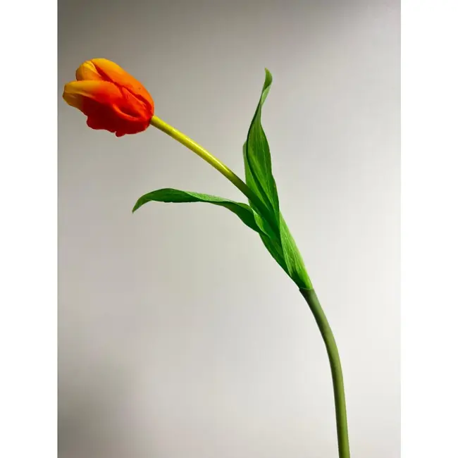 Zijde Tulp Oranje 48 cm | Levendige warmte en realistische pracht Geef uw interieur een energieke boost met deze hoogwaardige oranje zijde tulp. Met een lengte van 48 centimeter en een zorgvuldig vormgegeven bloemknop vangt deze tulp de essentie van het voorjaar. De warme oranje kleur verloopt natuurlijk over de bloemblaadjes, wat in combinatie met de realistische groene steel en bladeren zorgt voor een natuurgetrouwe uitstraling.