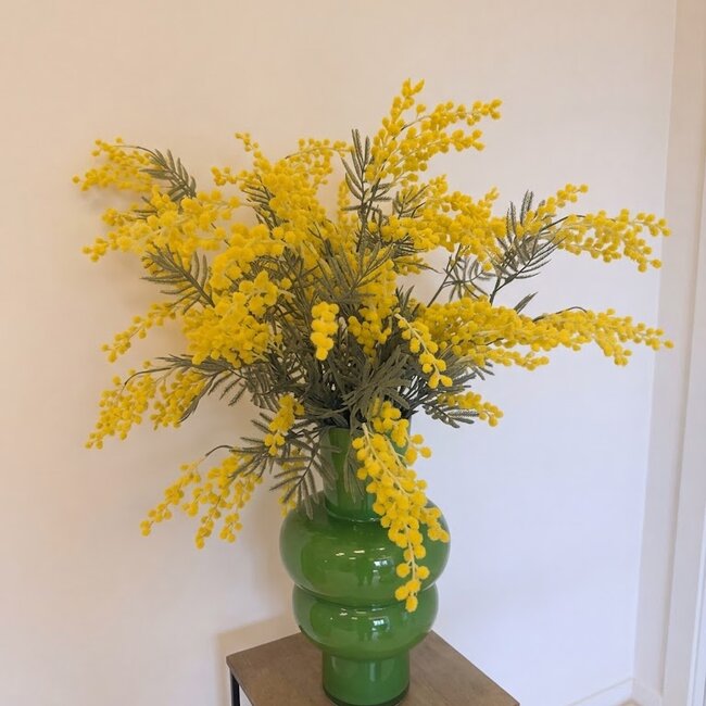 Zijden Boeket Golden Glow 70 centimeter | Een groots statement van natuurlijke pracht Breng een warme en zonnige sfeer in huis met dit prachtige zijden mimosa boeket "Golden Glow". Met een indrukwekkende lengte van 70 centimeter is dit boeket speciaal ontworpen om allure te geven aan uw interieur. Het grote voordeel van dit boeket is dat het oneindig mee gaat, waardoor u jarenlang geniet van de perfecte gouden gloed in uw kamer.